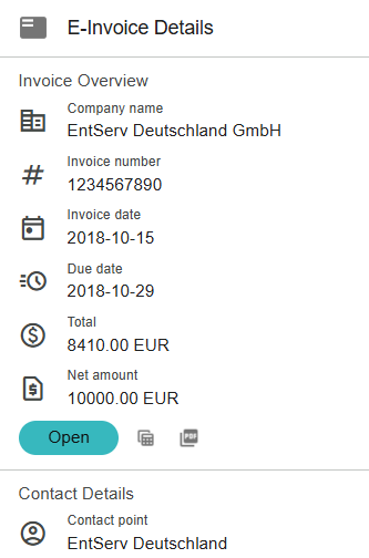 - Using the Open button, you start our E-Invoice Viewer. It displays all contents of the e-invoice in a separate view.